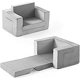 $19.94 (as of October 21, 2025 16:35 GMT +00:00 - More infoProduct prices and availability are accurate as of the date/time indicated and are subject to change. Any price and availability information displayed on [relevant Amazon Site(s), as applicable] at the time of purchase will apply to the purchase of this product.)Kids Couch, 2-in-1 Toddler Chair Comfy 1-3 Years Old, Convertible Kids Chair, Toddler Couch That Fold Out, Kid Lounge Chairs for Boys and Girls, Soft Coral Fleece, Grey