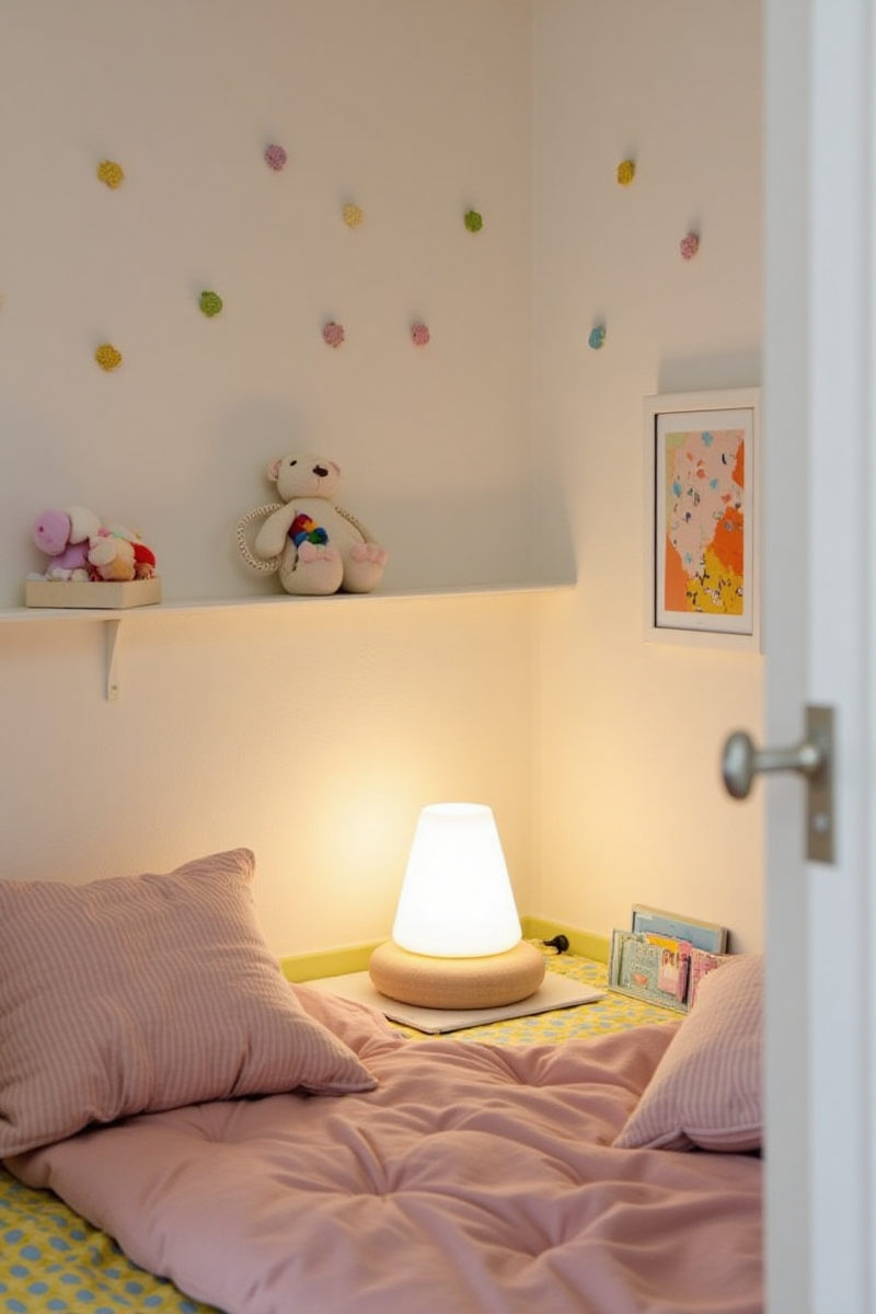 Place soft-glow lamps on the floor or low shelves so children can operate them independently.